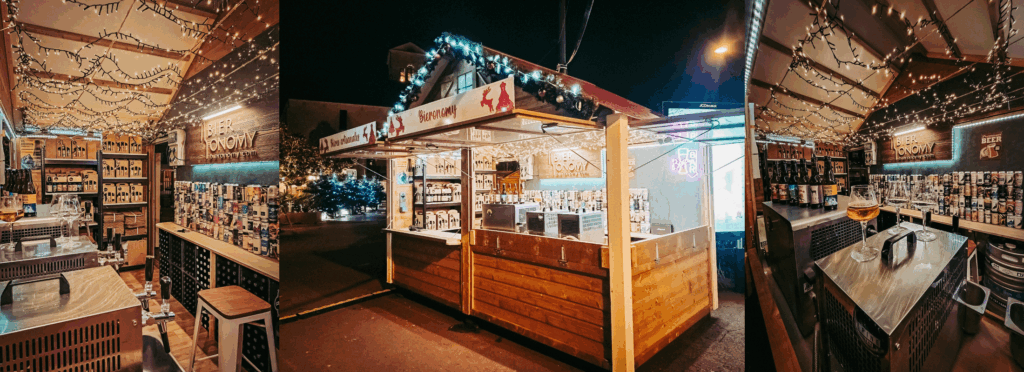 6 bières craft proposées à la pression dans le chalet de Noël de Bieronomy Sainte-Claire + Vente de coffrets de bières artisanales. Avec des bières aux styles variées signées par les brasseries : Outer Range Alps, Mont Salève, Big Mountain, Les Funambules, Galibier, Veyrat